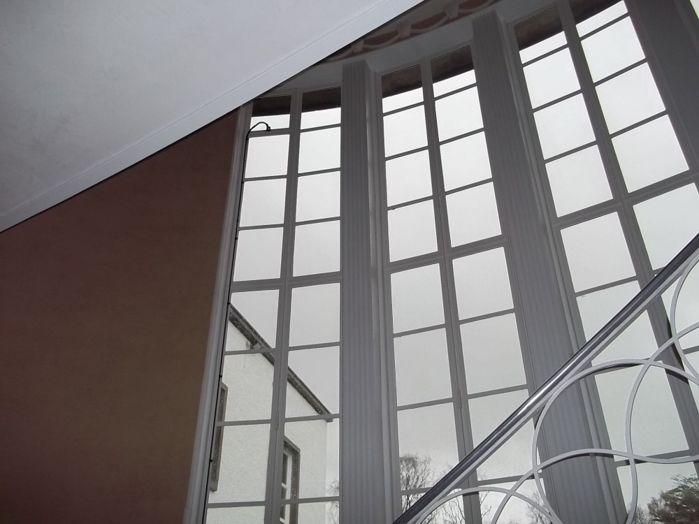 The windows vary in size from 400mm diameter bulls-eyes, through to 6.5 metre tall staircase screens. There is also a diversity of different openers with side hung, top hung, bottom hung and horizontal pivots. And, while the curve to Gribloch House's front elevation is accommodated by faceting the steel frames within the radiused sub-frames, there is a large curved on plan window to the rear of the building.